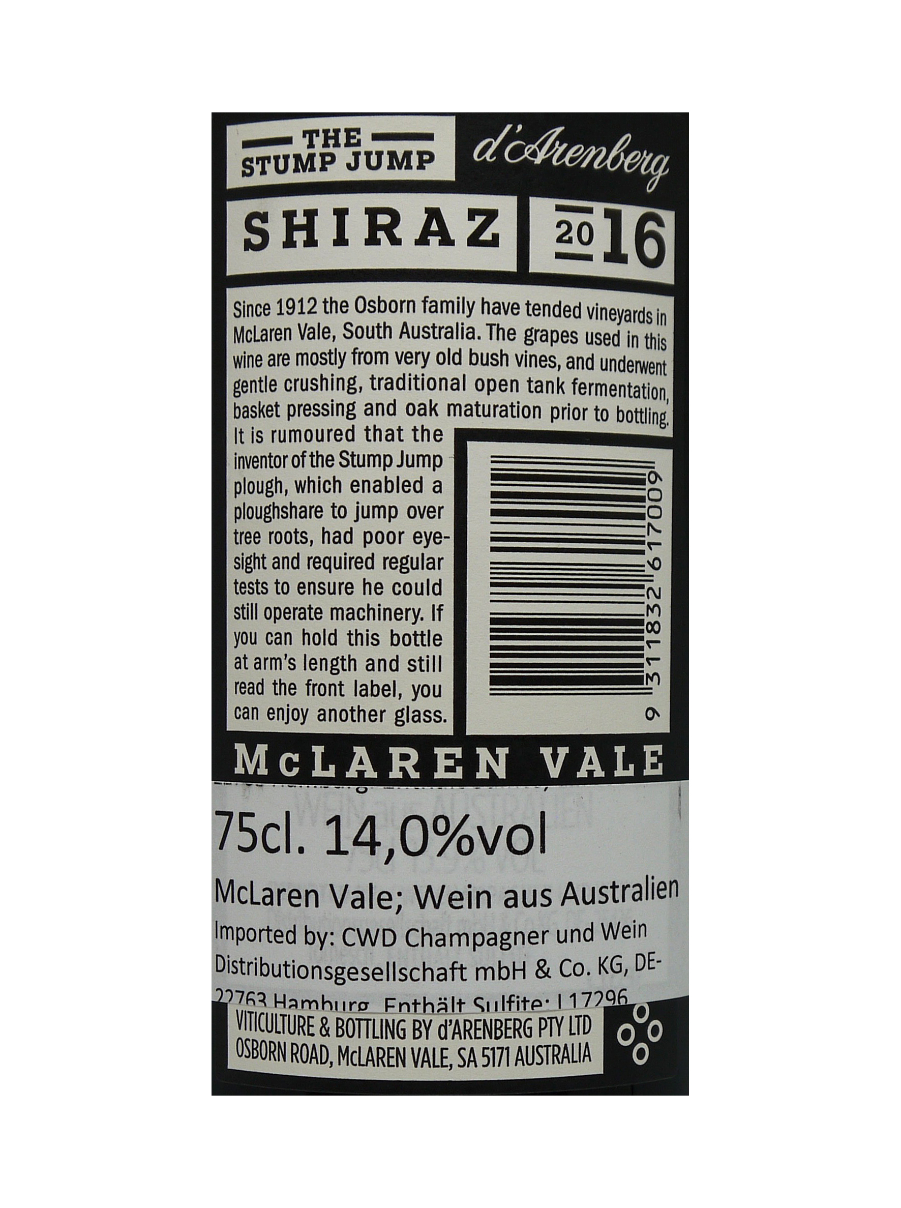 d´Árenberg The Stump Jump Shiraz: Australiens geliebter Rotwein-Klassiker Nr. 1, hier weitgehend von Trauben sehr alter Buschreben vinifizert. Der Wein wurde nach alter Tradition in offenen Gärbehältern fermentiert und dann in Eichenfässern ausgebaut. Sehr saftig-runder Stil mit reichlich reifer dunkler Frucht, ergänzender Kräuterwürze und willkom -mener Harmonie – kurz: ein unkomplizierter, geradliniger Bilderbuch-Shiraz aus Down Under, der im Handumdrehen Fans finden wird und das Potenzial zum sicheren Renner besitzt.